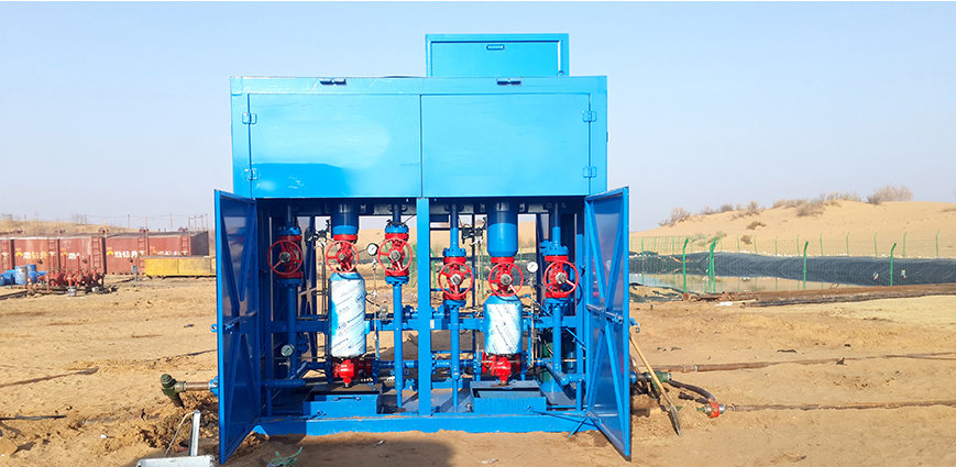 该设备在使用过程中不仅可以达到与国外进口装置同样效果,还具备防硫防酸功效,适用于高压、高产、含酸油气井的除砂作业,能有效地除去压裂砂、地层砂、射扎弹壳等有害固相杂物和粘土、稠油等影响地面输送、测试、计量的物体。